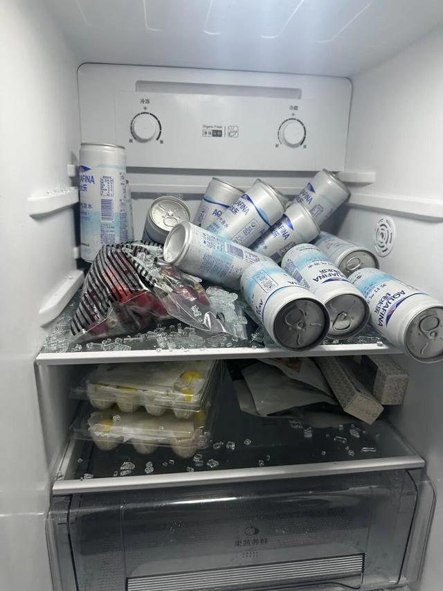你从冷冻室拿出来,室温一热,里面的冰解冻、气体急剧释放,压力直接撑爆瓶子,轻则喷得满手都是,重则瓶子炸开,拉环飞溅,划伤脸、戳到眼睛都有可能!