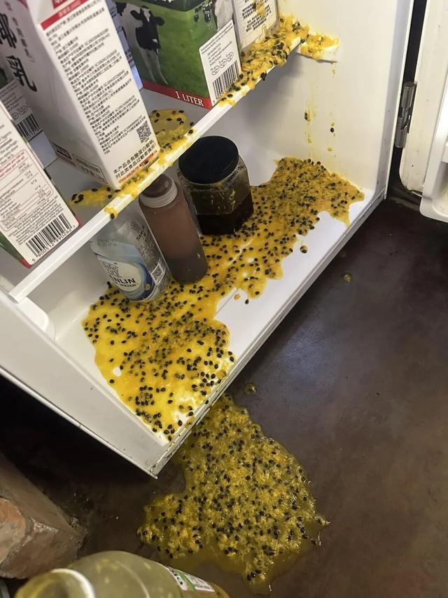 等你打开冰箱,“砰”一声,百香果浆溅得冰箱里到处都是,黏糊糊的,擦半天都擦不干净。